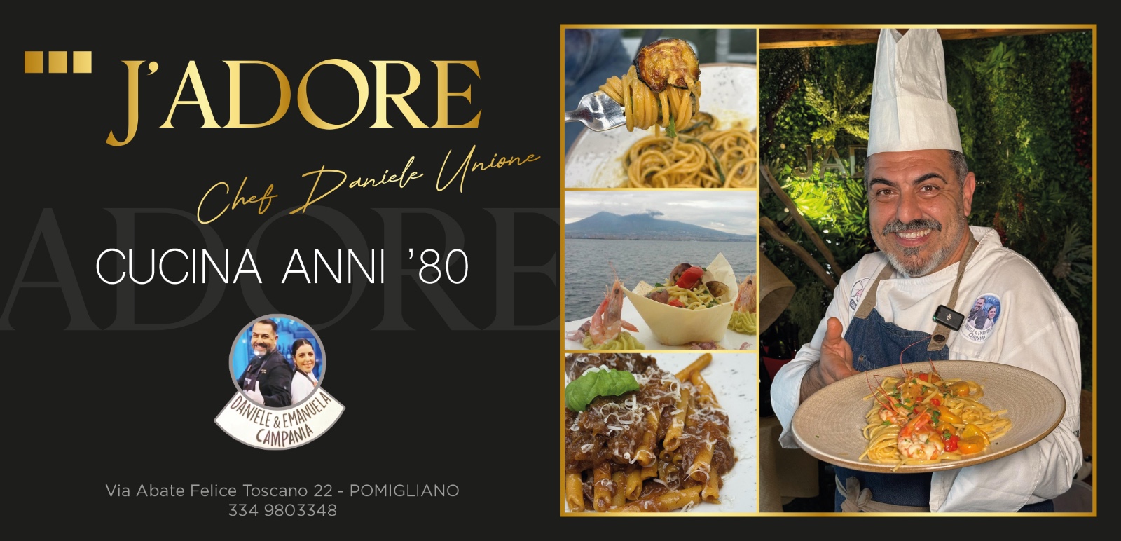 Papà Daniele è chef presso un ristorante di Napoli e la sua cucina è fatta di profumi e sapori tipici campani, mentre la figlia Emanuela lavora in sala. Hanno anche un’altra attività di catering dove entrambi si occupano della preparazioni dei piatti.